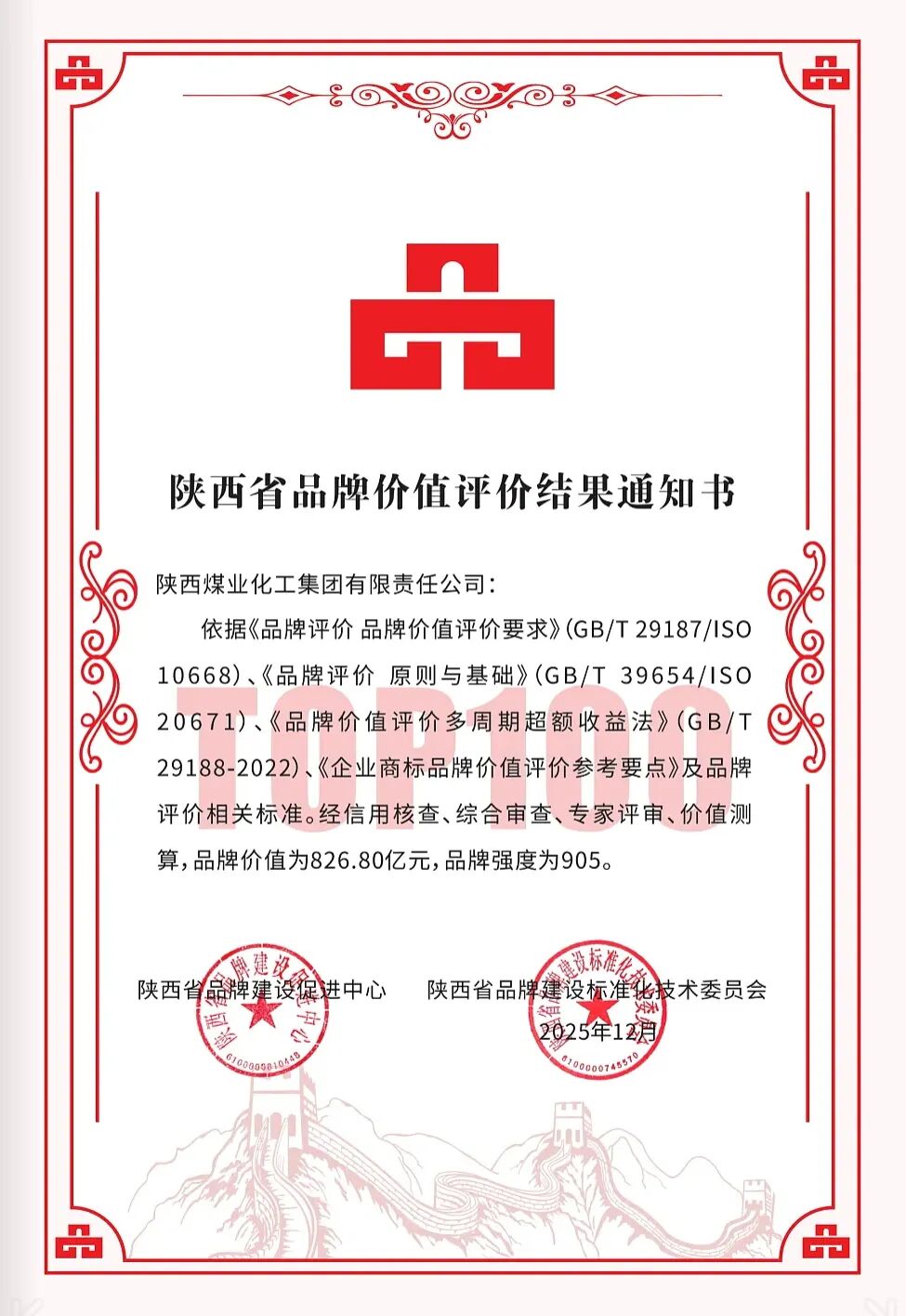 陜煤居榜首!全省品牌價(jià)值TOP100發(fā)布